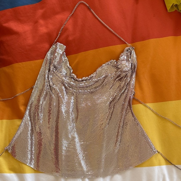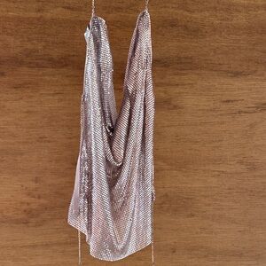 Shimmer in style with this elegant silver top featuring delicate chain straps. Perfect for a night out or special occasion. Backless. Beautiful