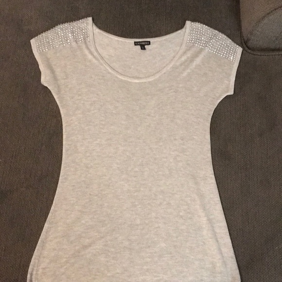 Grey Express rhinestone shirt. Rhinestones on shoulders. 100% Rayon Excellent condition