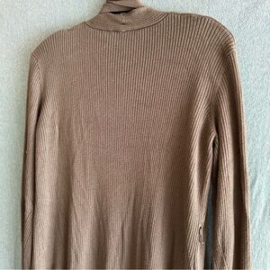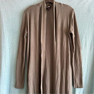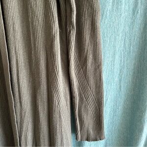 Chic ribbed cardigan from Express is a really hard to capture gray/green color. Ideal for layering. Comes with the matching belt.
