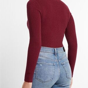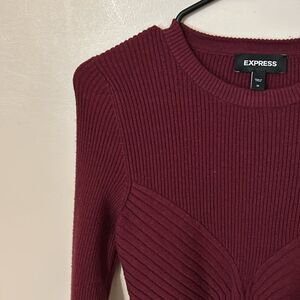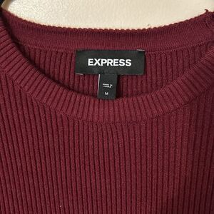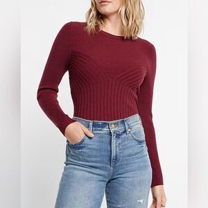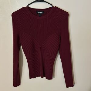 Express Ribbed Crew Neck Long Sleeve Sweater dark red wine size M