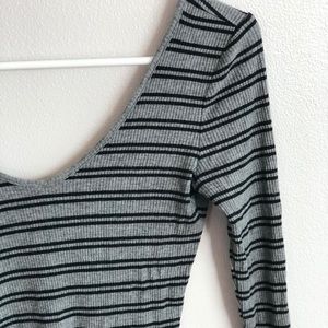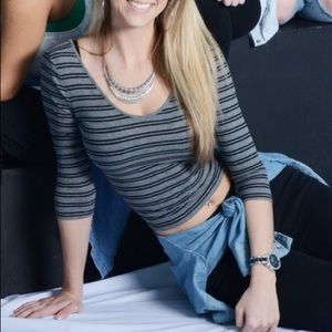 Worn once! Express One-Eleven ribbed striped crop top with scoop back. Gray and black with quarter length sleeves.