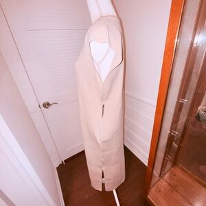 Stylish cream/nude maxi dress by Express. Simple design with hidden features that make it look fabulous on. Side slits for a sexy look, cap sleeves for a fun summer time look. Ideal for any event, pair with a dressier jacket or casual. Size XLG. NWT.