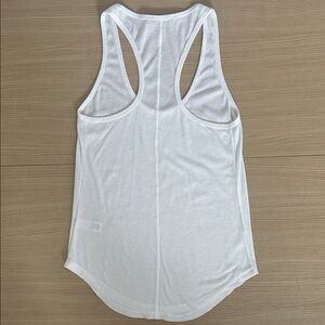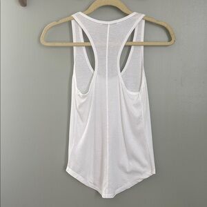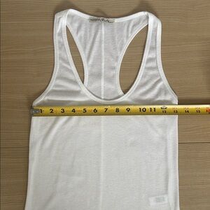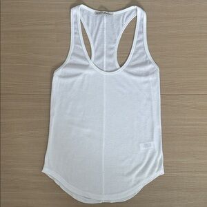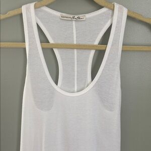 Express white Racerback tank top. Thin ribbed material, scoop neck, Racerback, rounded hem. Washed, never worn. Size X Small (size tag on the neck came off in the wash). See all pictures for measurements and condition.