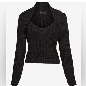 Express Ribbed Scoop Neck Long Sleeve Sweater Black L
