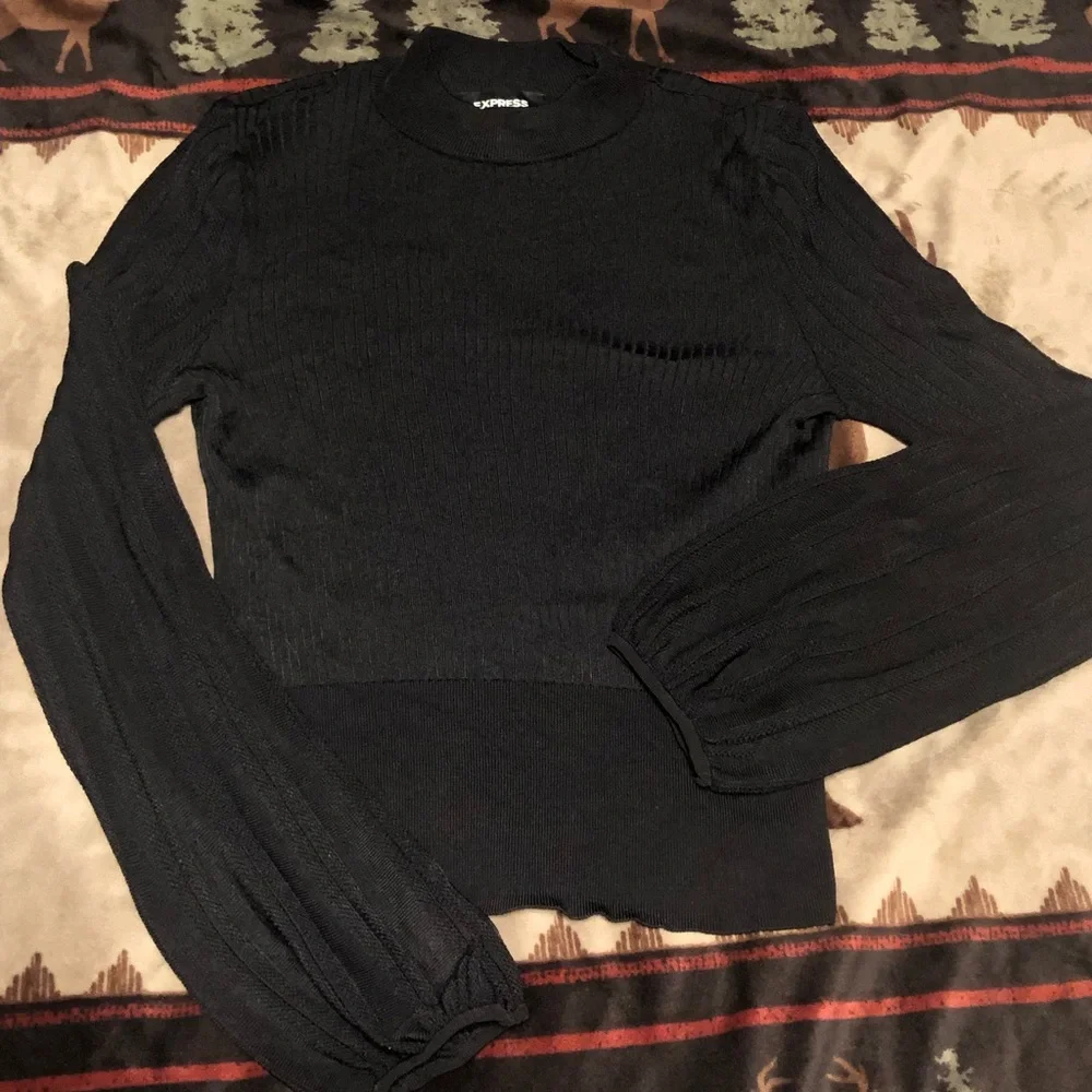This black ribbed sweater from Express is super comfy and stylish! The bell sleeves give it a 60’s feel and can pair with anything! Brand new without tags, has only been tried on.