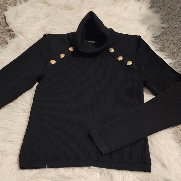Excellent Condition Express Ribbed Turtleneck, Size Medium, Black with Gold Novelty Buttons