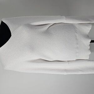 Sexy Elegant White Knit Sweater. Features Stylish Asymmetrical Neckline. Perfect for layering.