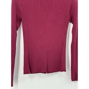 Express Ribbed Zip Front Sweater M Burgundy Stretch Long Sleeve Knit Top