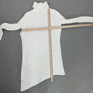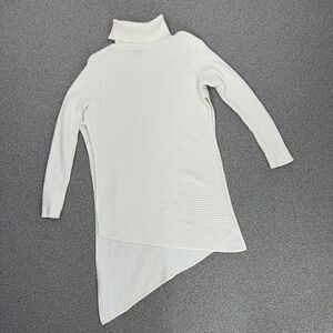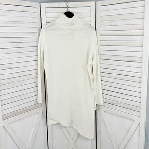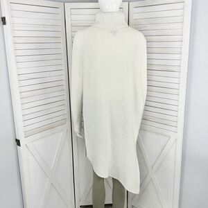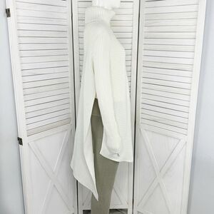 Express Ribbed Asymmetrical Hem Split Side Long Sweater Cream Large Turtle Neck