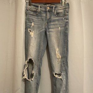 Mid Rise, Medium Wash, Ripped, Thrifted