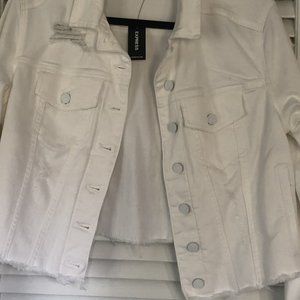 Express Ripped White Denim Jacket