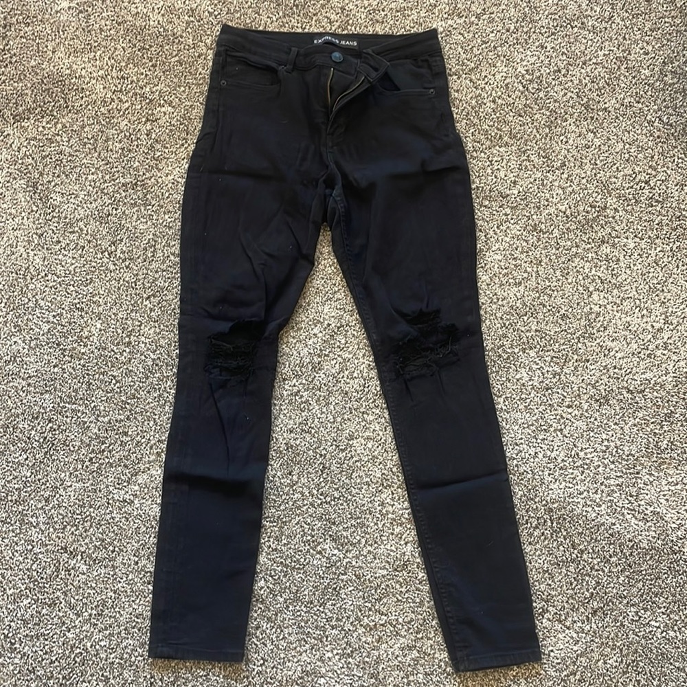 Express skinny jeans. Ripped at the knees. Light stretch. Regular length
