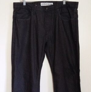 Express Rocco slim fit straight leg black men's jeans size 36x32. Excellent pre-owned condition with no flaws noted.