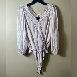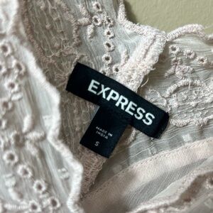 Express Romantic Pink Puff Eyelet Long Sleeve Cottagecore Bodysuit Top Small Y2K