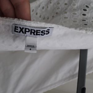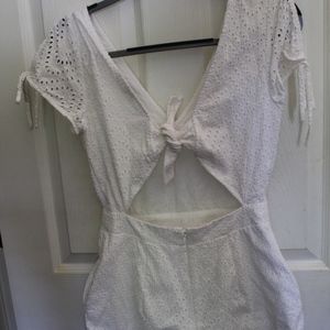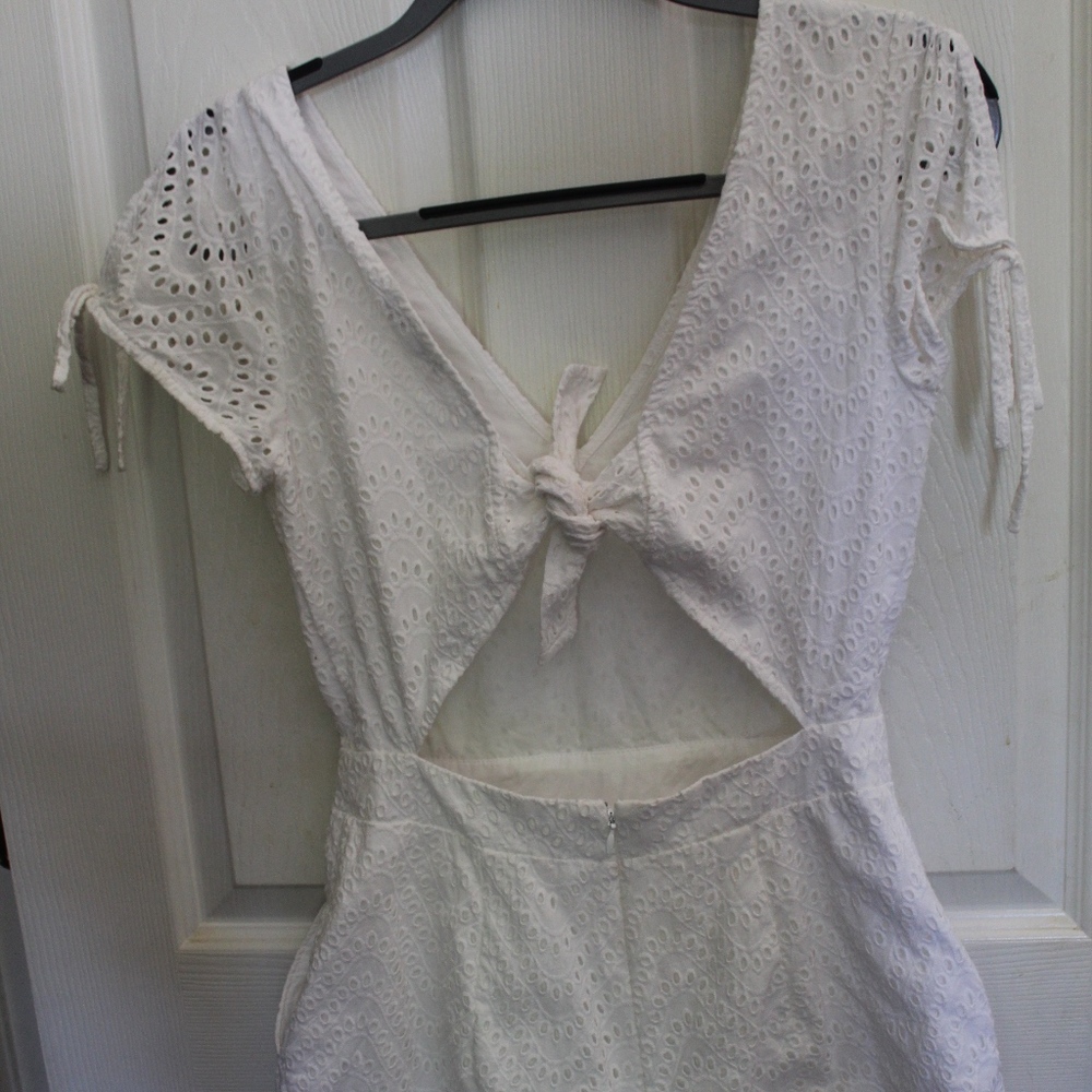 White eyelet Express romper with tie back and zipper. Also has pockets!!!
