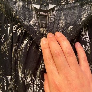 Express, pattern romper, worn a few times, in good condition. Xs, off the shoulder sleeves