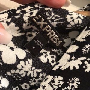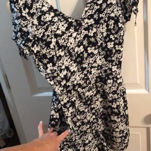 Black and white floral v-neck romper with pockets. Slit and tie detail on sleeves. It also ties in the back and has a zipper. Worn once. EC