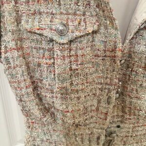 -has a shine in the material with pinks and blues