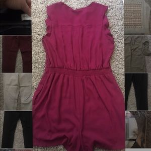 So cute and girly! Express Romper in fuschia, size 12. Zipper on side and front. Has pockets! Only wore 1 time. Dry cleaned only, smoke free home!