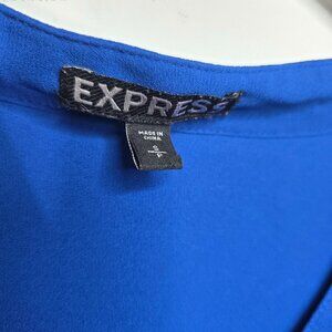 Express Royal Blue Flowy Roll Tab Henley Long Sleeve Top