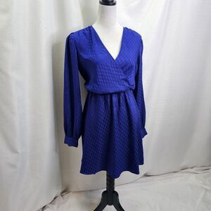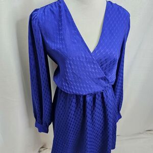 Express Royal Blue Jacquard Satin Tie Waist Long Sleeve Mini Dress Size Small