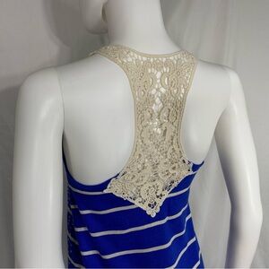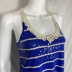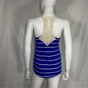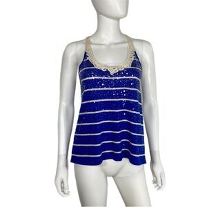 Express Royal Blue Striped & Sequins Crochet Racer Back Tank