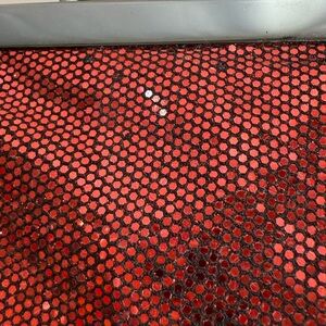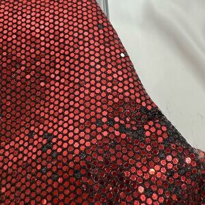 Small oval shape evening purse with sparkly red beading and pewter silver snap closure and chain. Pre-one, some wear as indicated in photos. Pairs well either ruby red shoes.