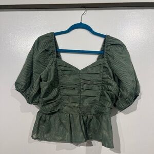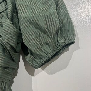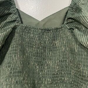 Perfect for spring and summer! Beautiful green color with subtle patterns on fabric. Gathered in the front, stretchy back. Puff sleeves. Can be styled on or off the shoulder. Very soft fabric, comfortable fit. New, never worn from Express! NWOT!