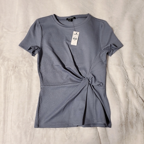 NEW and never worn! Simple top with ruching in a beautiful pale blue color. Wear with a pair of black skinnies and statement jewelry to work or a night out.