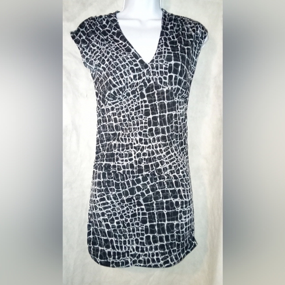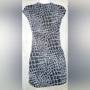 Gray and black low cut poly/spandex top. (Sz. XS)
