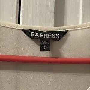 Elegant cream blouse with ruffle detailing, perfect for any occasion. Made by Express for a stylish and sophisticated look.