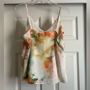 Express. Cami top. Ruffle details. Adjustable straps. Orange/yellow/green floral pattern. Size Small.