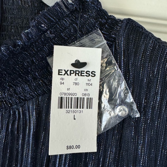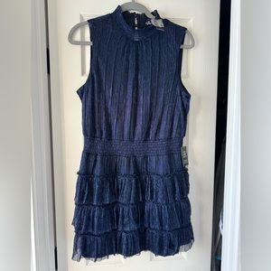 Navy, sparkly express dress with ruffles. New with tags, never worn.