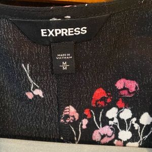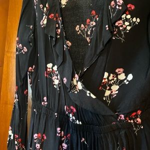 Size M Gently worn Ruffle V-neckline Black with pink, red and white florals