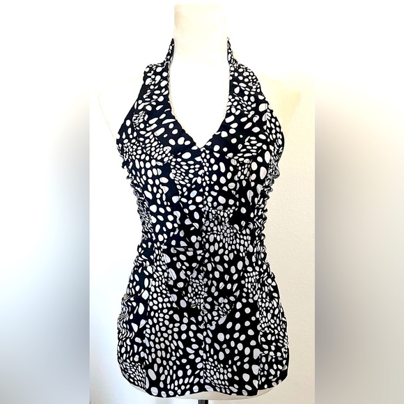 Front Ruffle halter top. Side zipper Zipper measures 12.5 inches