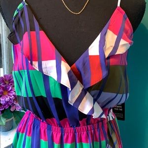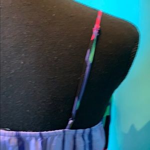 Front closed, straps are adjustable, elastic waist to compliment figure !