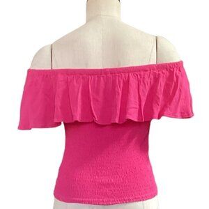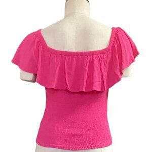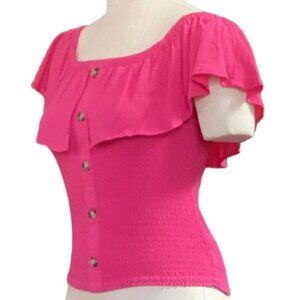 Express Ruffle Neck Smocked Top Button Accents S Pink 70X