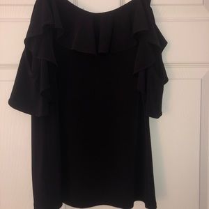 Express Ruffle Overlay Cold Shoulder Blouse