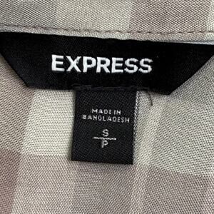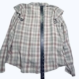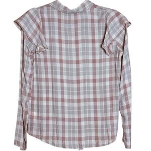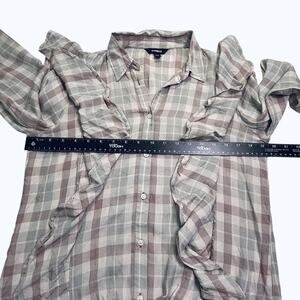 Express Ruffle Plaid Top Sz S Button Down Tie Hem Pink Gray Twee Coquette Girl