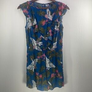 Express- Ruffle Short Romper With Birds and Floral Print Size XS