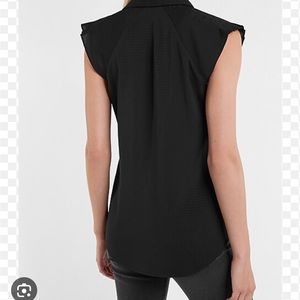 Express Ruffle Shoulder Short/Cap Sleeve Button-Up Shirt