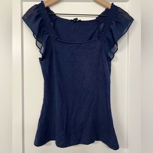 Express ruffle sleeve top in navy blue. Very good used condition, size small