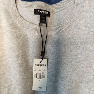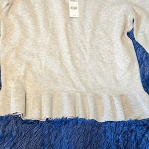 NWT Gray Sweater with ruffle at waist. Size Large. stretchy material. Pit to put approx. 21". Length approx. 24". Kept in smoke-free home.
