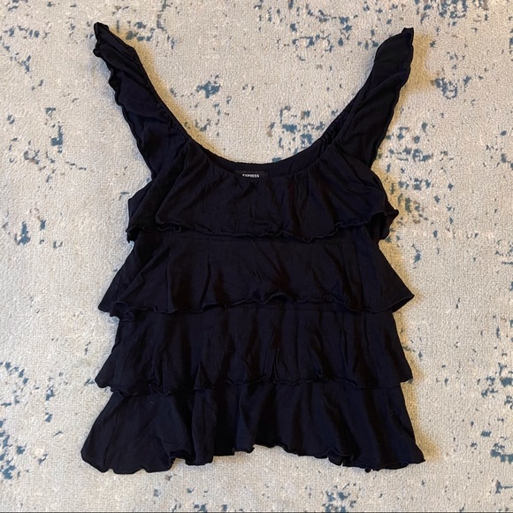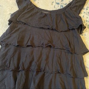 Black Express top with 4 layers of ruffles. Size M. 52% cotton, 48% modal.