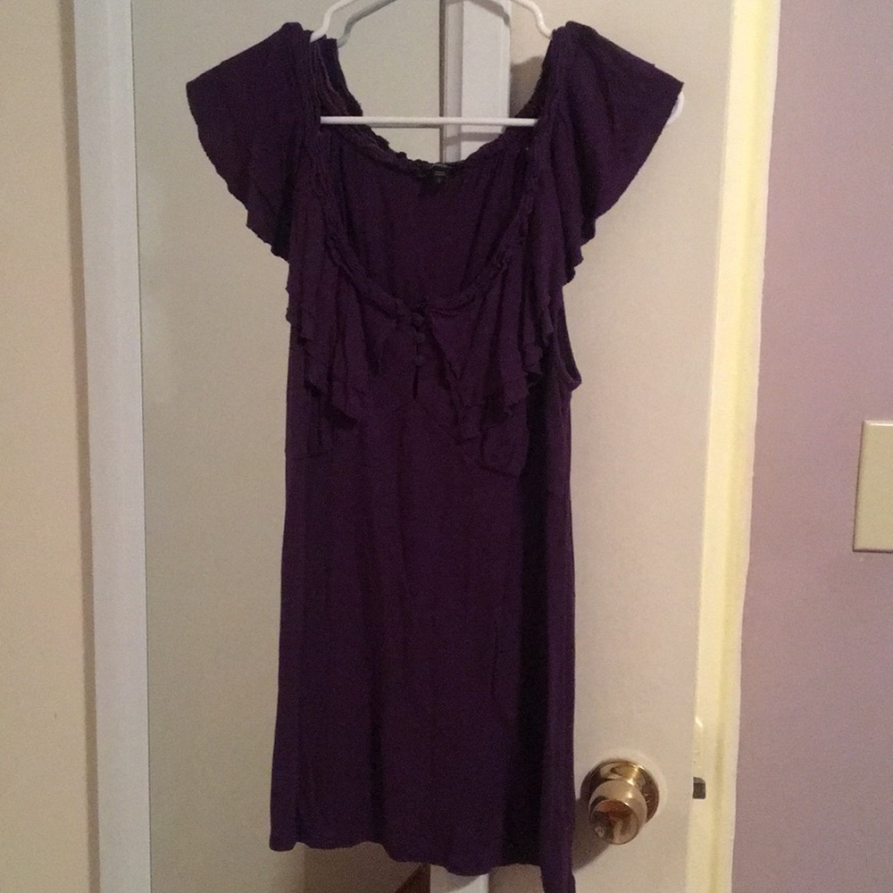 Express purple ruffle top, with button details. Size: L 100% rayon