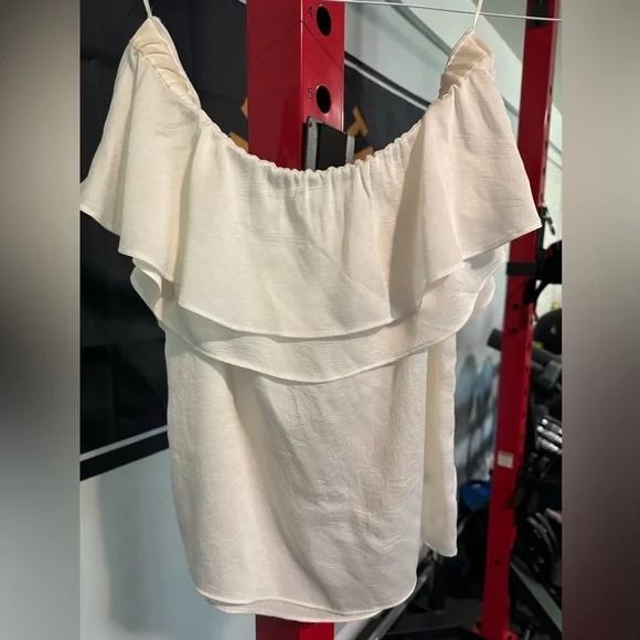Perfect condition cream ruffle top. Has arm hole to wear as straps, off the shoulder or strapless.