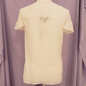 This off-white top from Express has a wonderful, light fabric and feminine ruffle in the front. New with tags :) It would look great with jeans, dress pants, or cute leggings. Small