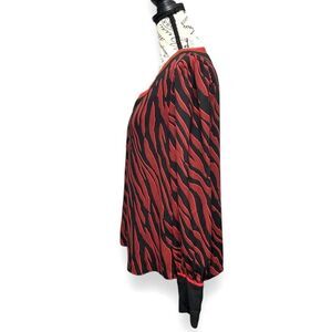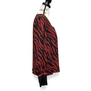 Express S Red Black Zebra Print V-Neck Blouse Long Sleeve Button Cuff Top Y2K