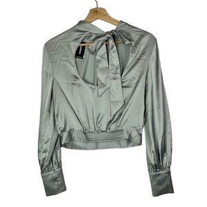 Express Sage Green Satin Open Back Long Sleeve Blouse XS