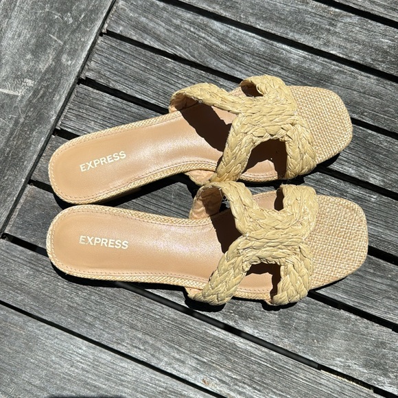 Express slides sandals Made to look like raffia Comfortable Barely worn